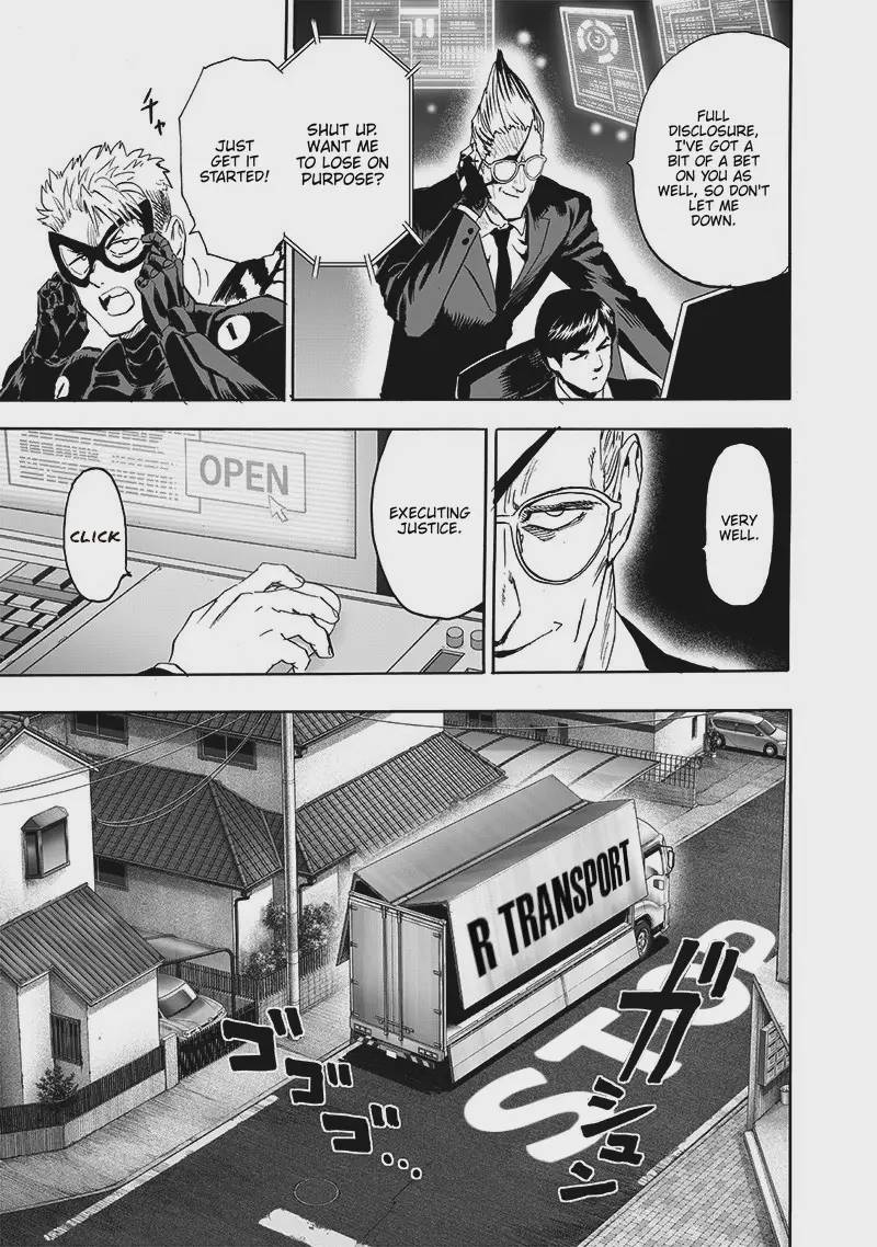 This chapter blends satire, action, and humor—hallmarks of the One Punch Man manga: